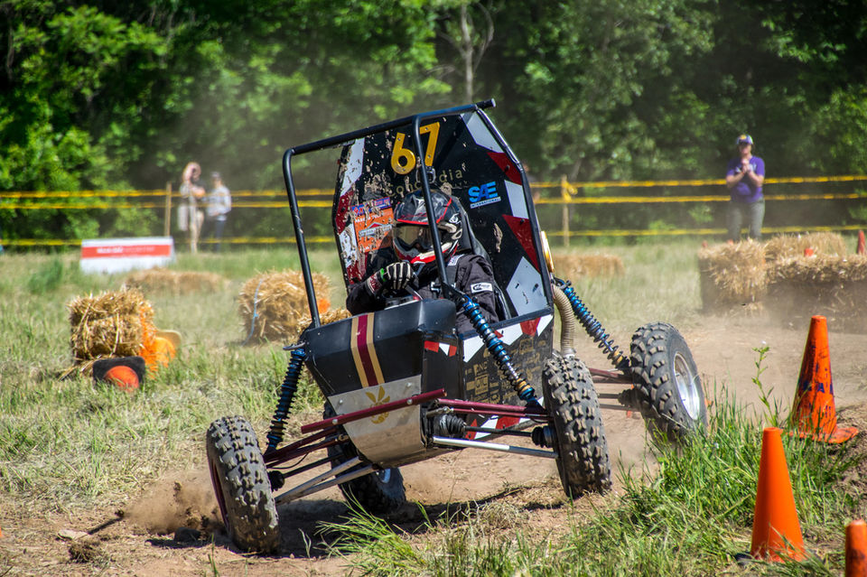 Concordia Baja Racing has a history of building off-road vehicles spanning for over 20 years. Every year, the Baja team has to design a complete vehicle and build it in order to compete in official SAE Collegiate Design Series competitions, where we compete against other universities from across the world. While the engine is provided by SAE International, the team must design the chassis, suspension, and driveline systems to outperform competitors. Vehicles are tested to near destruction during several of six possible events: acceleration, suspension and traction, rock crawl, maneuverability, hill climb, sled pull, and finally a four-hour wheel-to-wheel endurance race.
